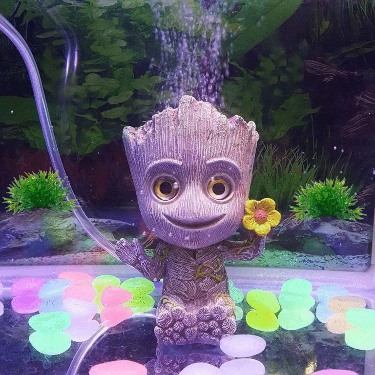 A decorative aquarium bubbler that combines functionality with aesthetics, featuring multiple blue tubes designed to release oxygen bubbles while surrounded by colorful artificial coral and flowers at its base. This piece serves both as an ornamental decoration and a practical oxygen diffuser for your aquarium.
