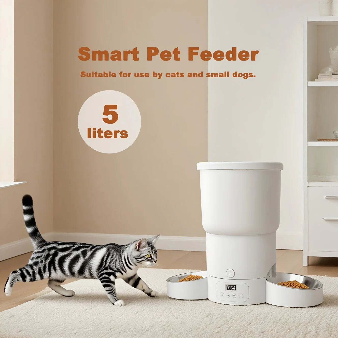 Still Tired of Feeding Conflicts? 5L Large Capacity Automatic Cat Feeder, Smart Food Dispenser with Timer. Precise Portion Control, 12 Meals, Dual Power Mode for Cats & Dogs, 10-Second Call Support. Includes 2 Stainless Steel Bowls – Hygienic & Easy to Clean, Perfect for All Your Pet’S Needs, Without Battery, Automatic Dog Feeder, Dog Feeder with Spinner Lid, Dog Food Bowls & Cabinet Cabinet, Large Capacity Grain Feeder, Corrosion resistant lid, Storage Cabinet Cabinet