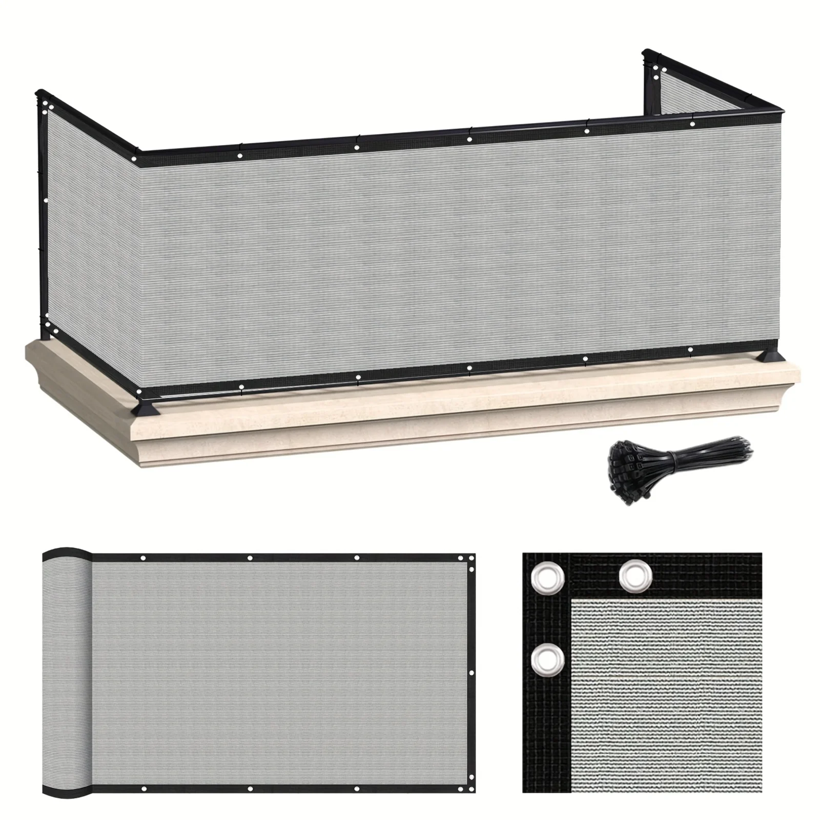 Balcony Privacy Screen with UV-Resistant Grey