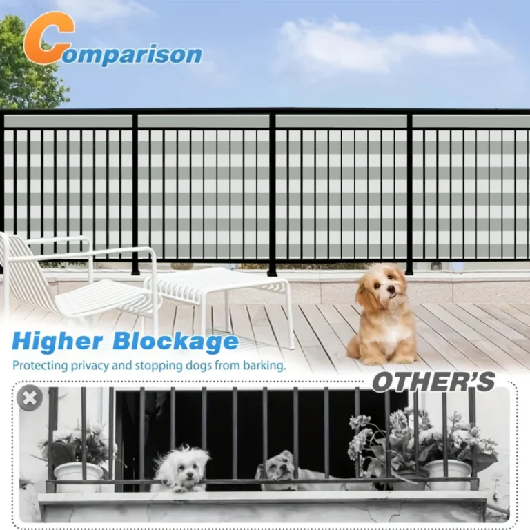 Heavy-Duty Balcony Privacy Screen with UV-Resistant Weatherproof material perfect for apartments and outdoor spaces. This fully opaque barrier offers protection from sun wind and dust while maintaining privacy. Includes reinforced ties and durable PVC construction for long-lasting performance in all weather conditions