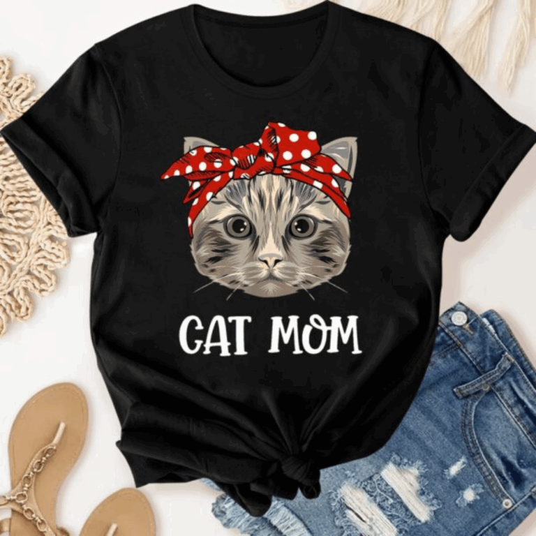 The t-shirt showcases a unique design of a frazzled-looking black cat with striking blue eyes, surrounded by colorful piles of laundry items including folded clothes, detergent, and other cleaning supplies. The humorous ‘I’m Ok’ text adds a relatable touch that’s perfect for cat lovers and anyone who can relate to laundry day challenges. The design is prominently displayed on the front of the shirt.