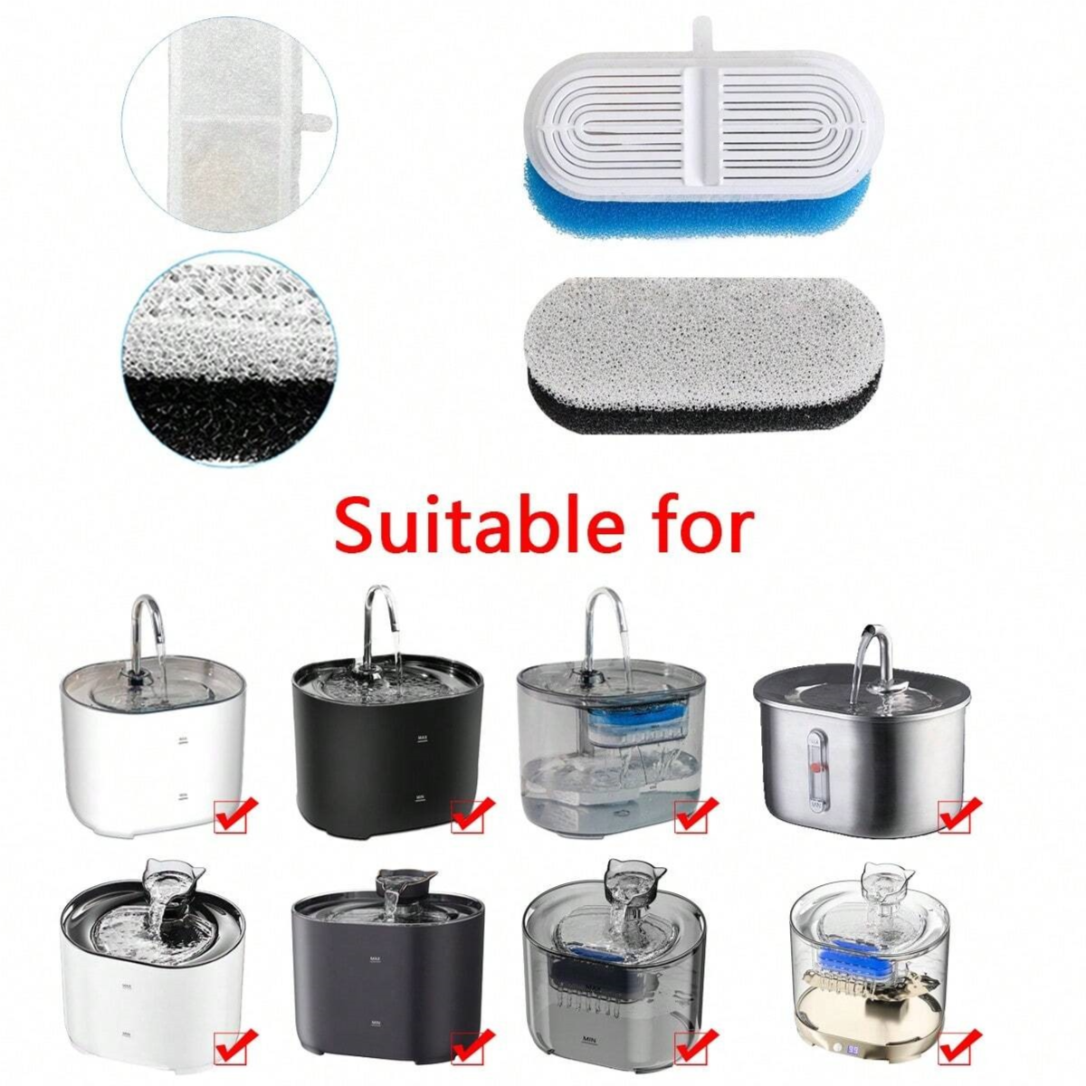 Replacement filters for cat water drinking fountains, designed to keep Water Fresh, Clean, And Safe For Your Pet.