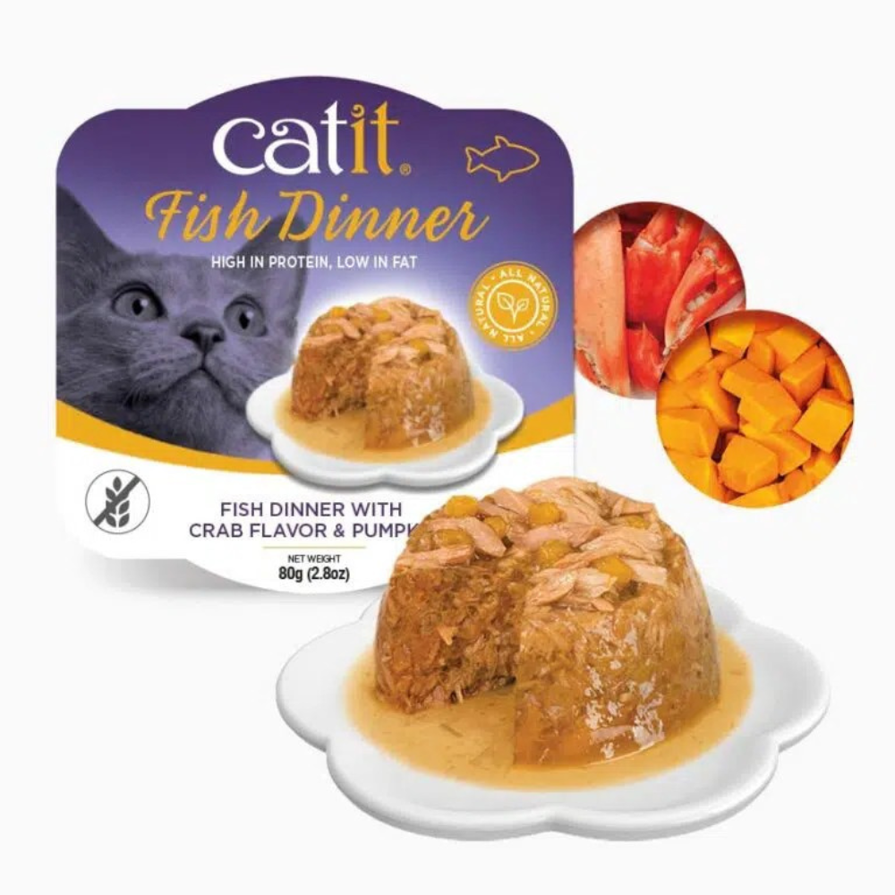 Catit Fish Dinner, Crab Flavour & Pumpkin Wet Cat Food 80gm