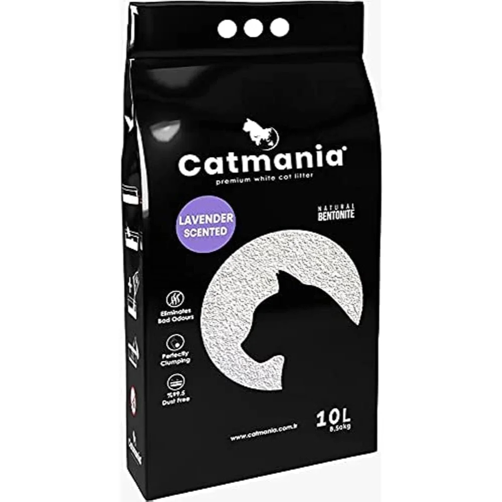 “Catmania Premium White Cat Litter is a high-quality clumping litter featuring natural bentonite and a pleasant lavender scent. With 99.5% dust-free formula and superior clumping ability, it offers effective odor control while maintaining a clean environment for both cats and owners.