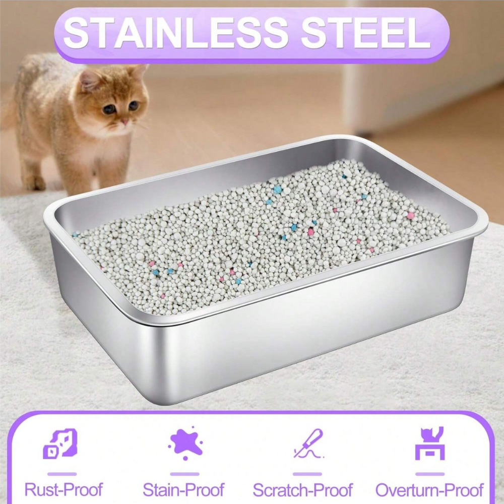 Catto Stainless Steel Cat Litter Box 35 x 45 x 10 cm