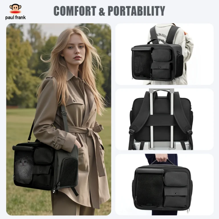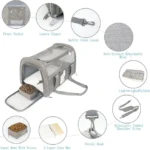 Features soft sides for pet comfort during travel or vet visits. Includes removable machine washable fleece pad. Mesh panels provide airflow and visibility. Easy access through front and top openings with secure zippers. Convenient carrying with dual handles and adjustable shoulder strap. Wash separately using mild detergent. Select appropriate size based on your pet’s measurements.