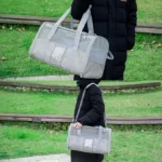 Classic style pet carrier bag in elegant grey with dimensions L50XW30XH31.
