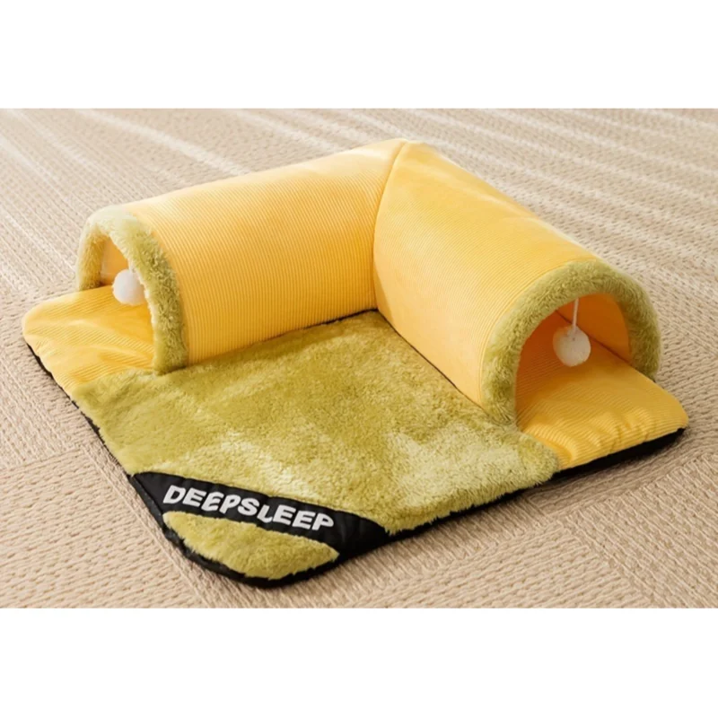 The bed’s tunnel structure appeals to cats’ natural instinct to hide and explore, while the peek hole adds an element of fun and engagement. The detachable design ensures convenient maintenance, while the vibrant yellow and green color scheme adds a cheerful touch to any home decor. The ‘Deep Sleep’ branding indicates its focus on providing quality rest for your feline companion.