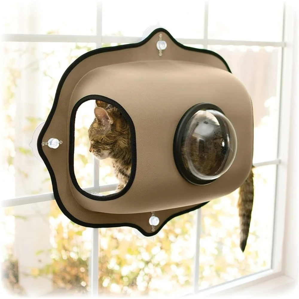 ” Cat Hammock with Lookout Bubble Window Tan 27 X 20 Inches. Instantly turn any window into a kitty entertainment centre! Bubble look out window for a mesmerizing experience your cat will love! Includes a FREE K&H Manufacturing Amazin’ Kitty Pad, Incredible suctions cups hold up to 60lbs.
