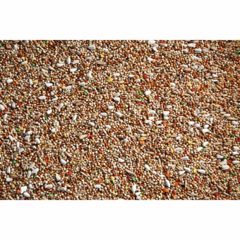 Contains premium-quality seeds, including White Sunflower, Safflower, and Buckwheat.