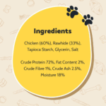 I’m made with 100% natural chicken breast and am sure to get your dogs’ tail wagging. Super scrummy chicken is wrapped around my chewy rawhide centre, creating the perfect treat for rewarding your pooch at home or whilst out and about.