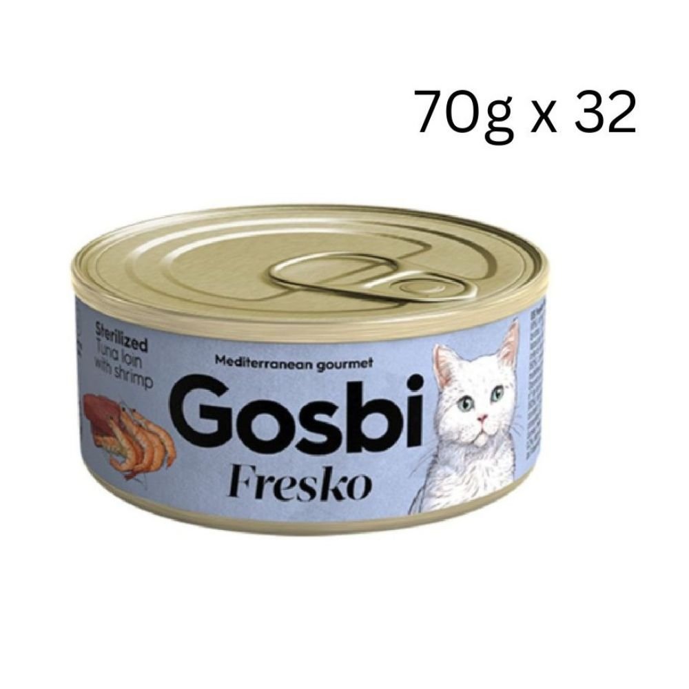 Gosbi Fresko Sterilized Tuna Loin With Shrimp Wet Cat Food 70g can