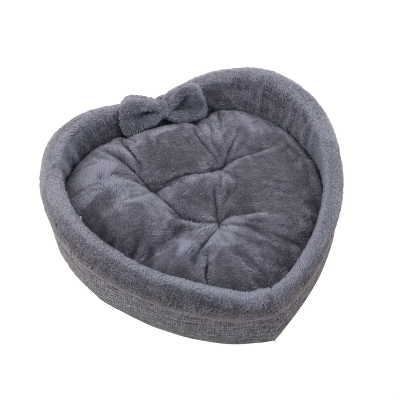 Heart-Shaped Cat Bed with Plush Gray