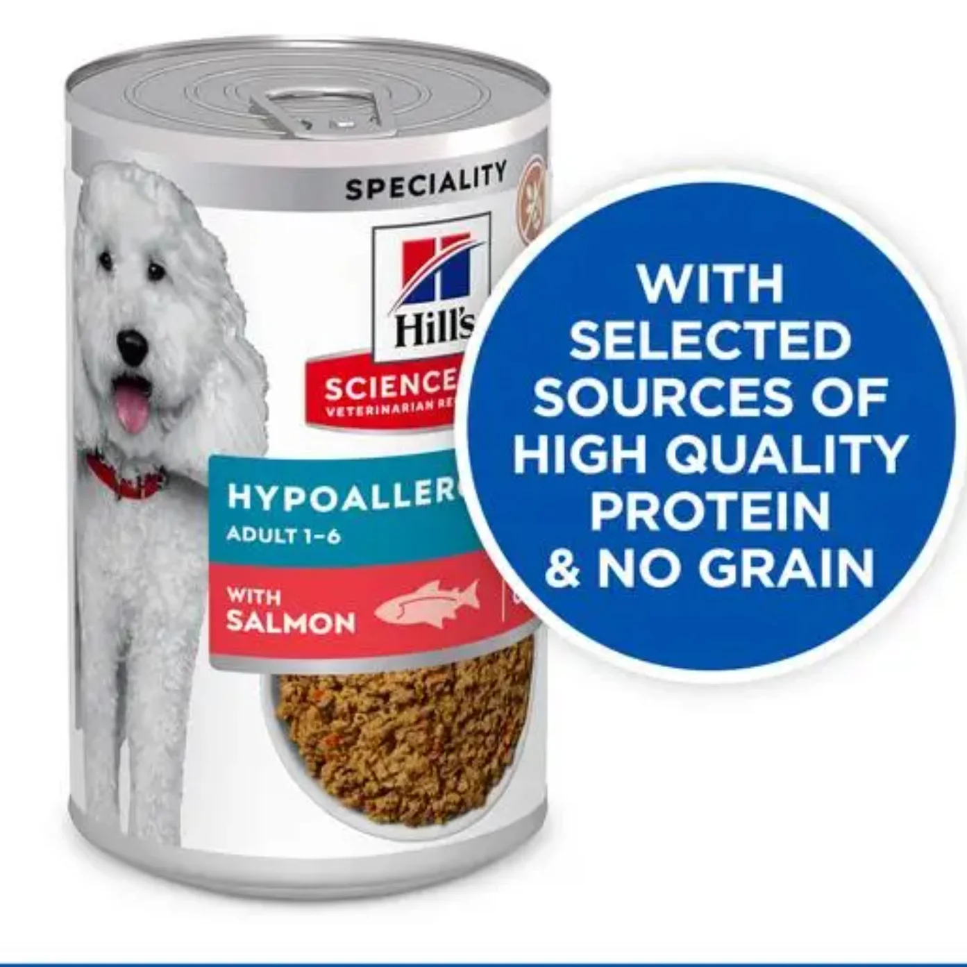 Hill’s SCIENCE PLAN Hypoallergenic medium adult dog food with salmon it is a gentle recipe formulated with limited high quality novel protein sources & no grain tailored to meet the needs of dogs with sensitivities.