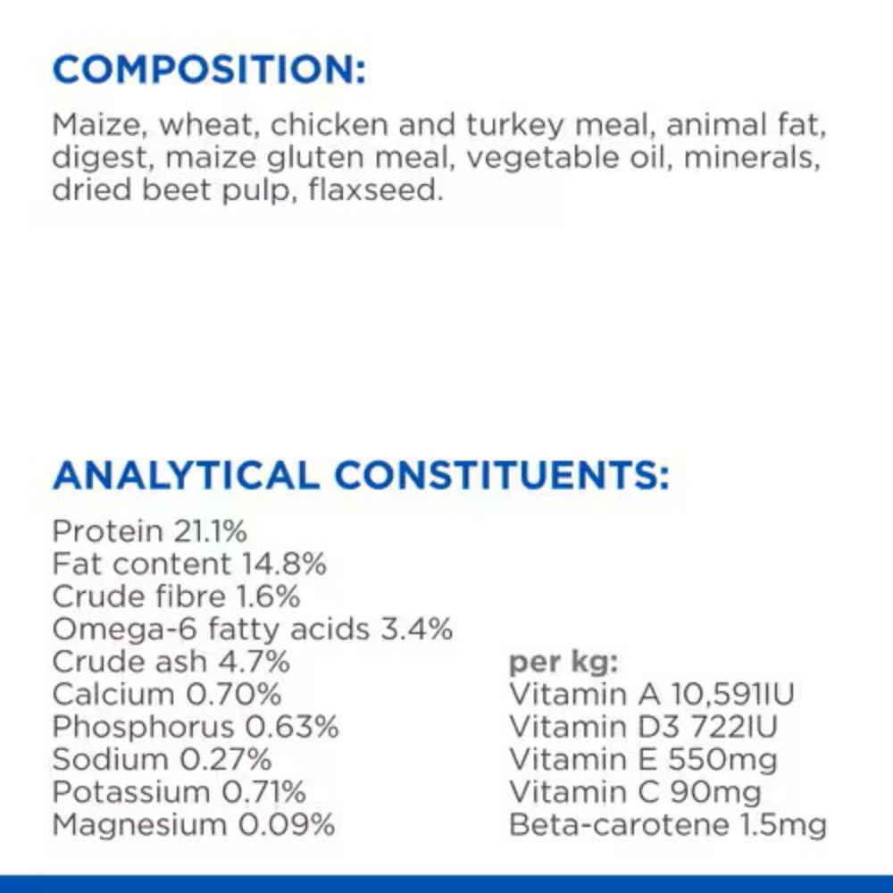 Easy to digest ingredients and fibres for healthy digestion