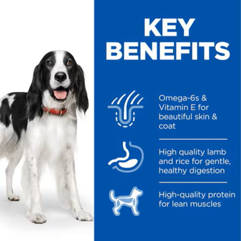 HILL’S SCIENCE PLAN Adult dog food with Lamb & Rice is specially formulated to fuel the energy needs of dogs during the prime of their life. Made with high quality, easy-to-digest ingredients.