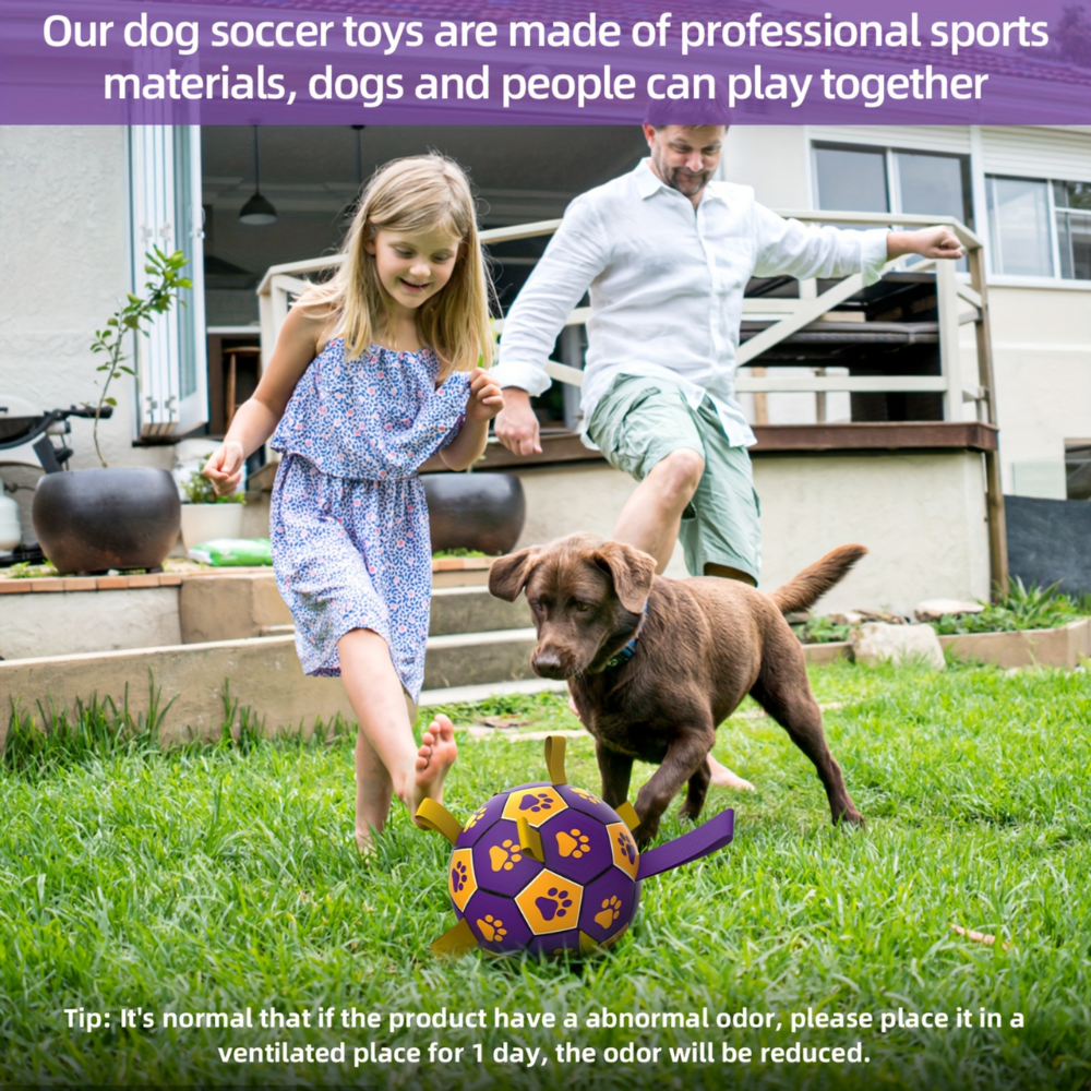 Dog Pattern Durable Football Design Pet Toy With Straps,Dog Chewing Ball Toy For Training Playing Teeth Cleaning, Interactive Fetch Pet Toy For Dogs
