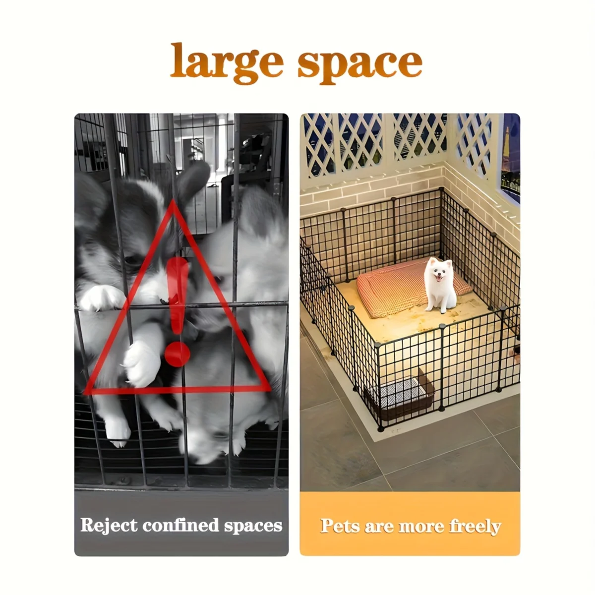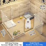 The playpen’s modular design allows for flexible configuration and easy assembly. Each panel connects securely with safety locks to prevent accidental separation. The included removable mats protect flooring while providing a comfortable surface for pets. The iron grille design allows pets to maintain visual contact with their surroundings while staying safely contained. The height is suitable for preventing jumping while still allowing easy access for pet owners.