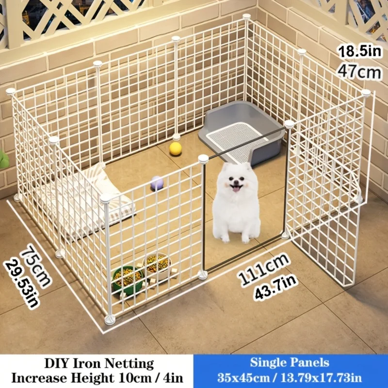 A versatile and secure metal playpen designed for small to medium dogs. The sturdy iron grille construction provides both safety and durability while maintaining visibility and ventilation.