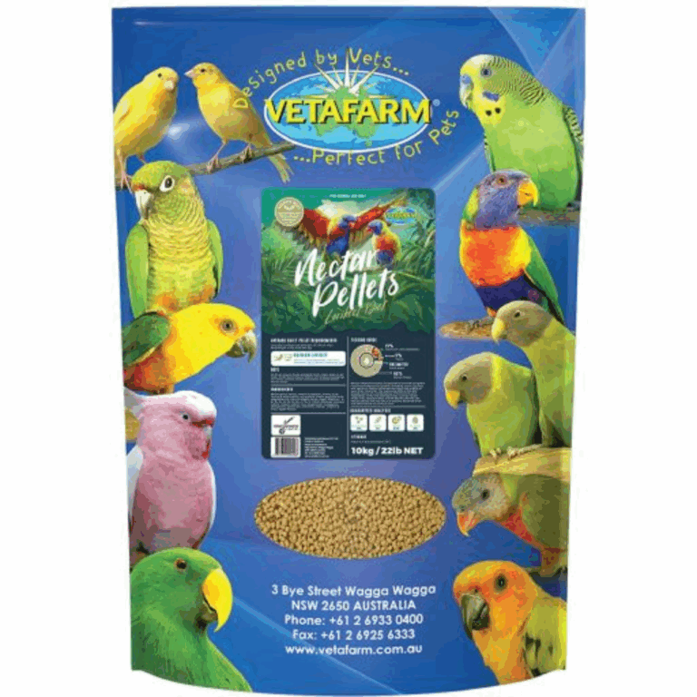 “Nectar pellets were formulated by Avian Veterinarians to provide complete nutritional balance for growth, breeding, brain function and optimum feather development for all Loris and Lorikeets, when fed as 80% of your birds total diet.
