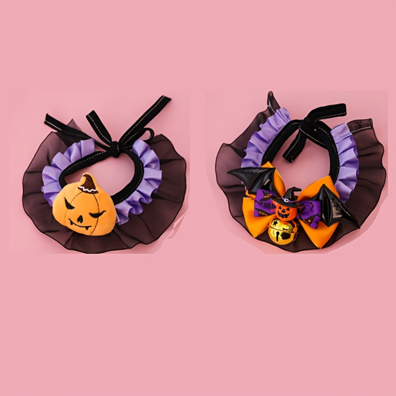 Cat & Dog Bandanas, Collars, Bibs & Drool Pads – Cute Ruffled Pet Costume Accessories with Bat, Pumpkin & Witch Hat Designs, Machine Washable for Small/Medium Pets (Adjustable for Cats & Dogs) – Safe & Comfortable for Costume Parties & Photo Shoots, Festive Pet wear, Soft Fabric, Durable Stitching, Party Planners