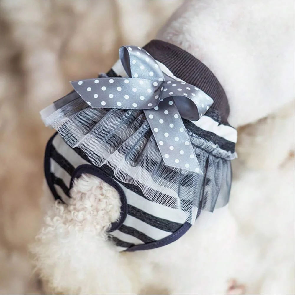 Cute Cartoon Pet Physiological Pants with Lace and Bowknot Decoration, Multifunctional Dog Menstrual Panties, Leakproof, for Small Dogs
