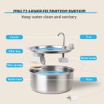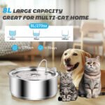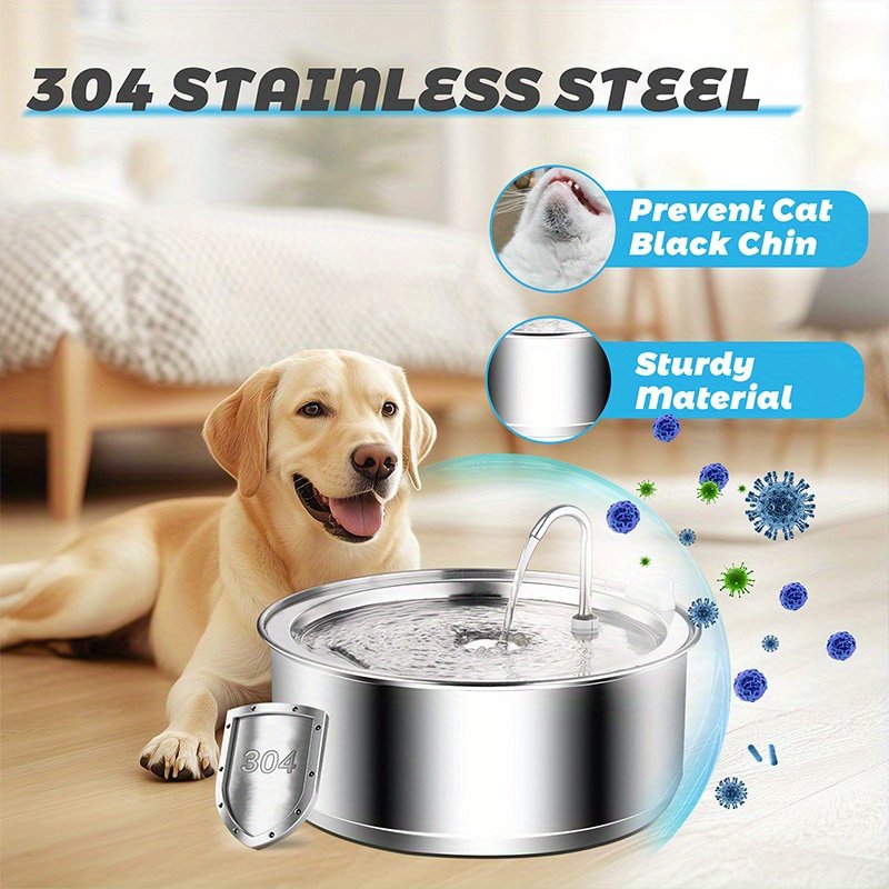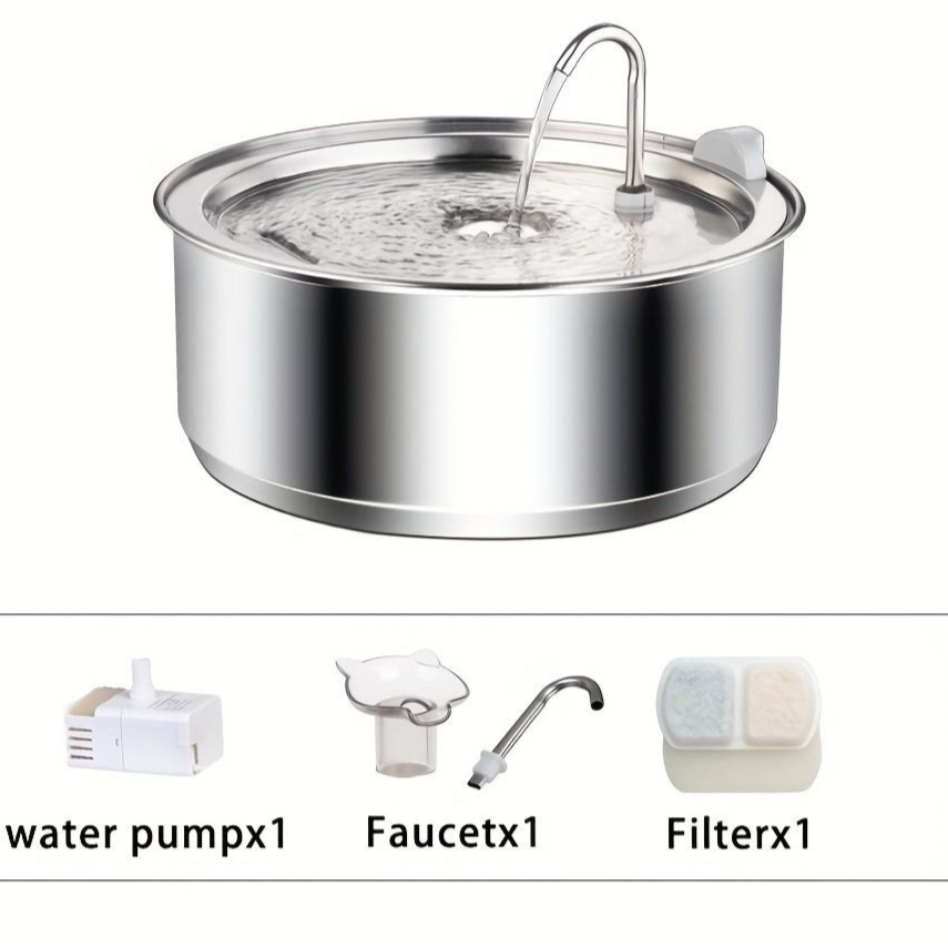 This 8L stainless steel pet water fountain features a dual faucet design and provides continuous filtered water circulation for pets. The large-capacity, USB-powered unit operates silently while keeping water fresh and clean through its built-in filtration system.
