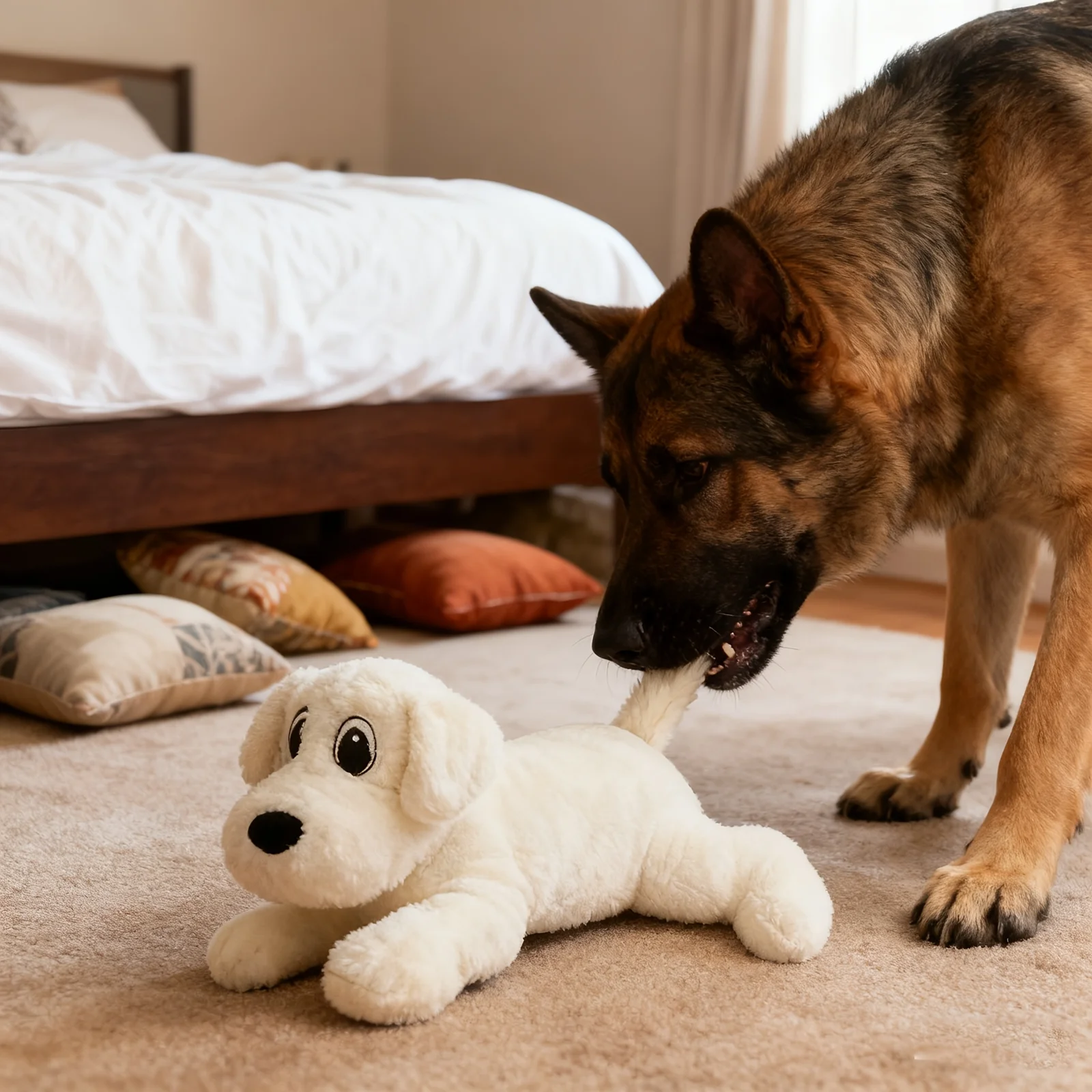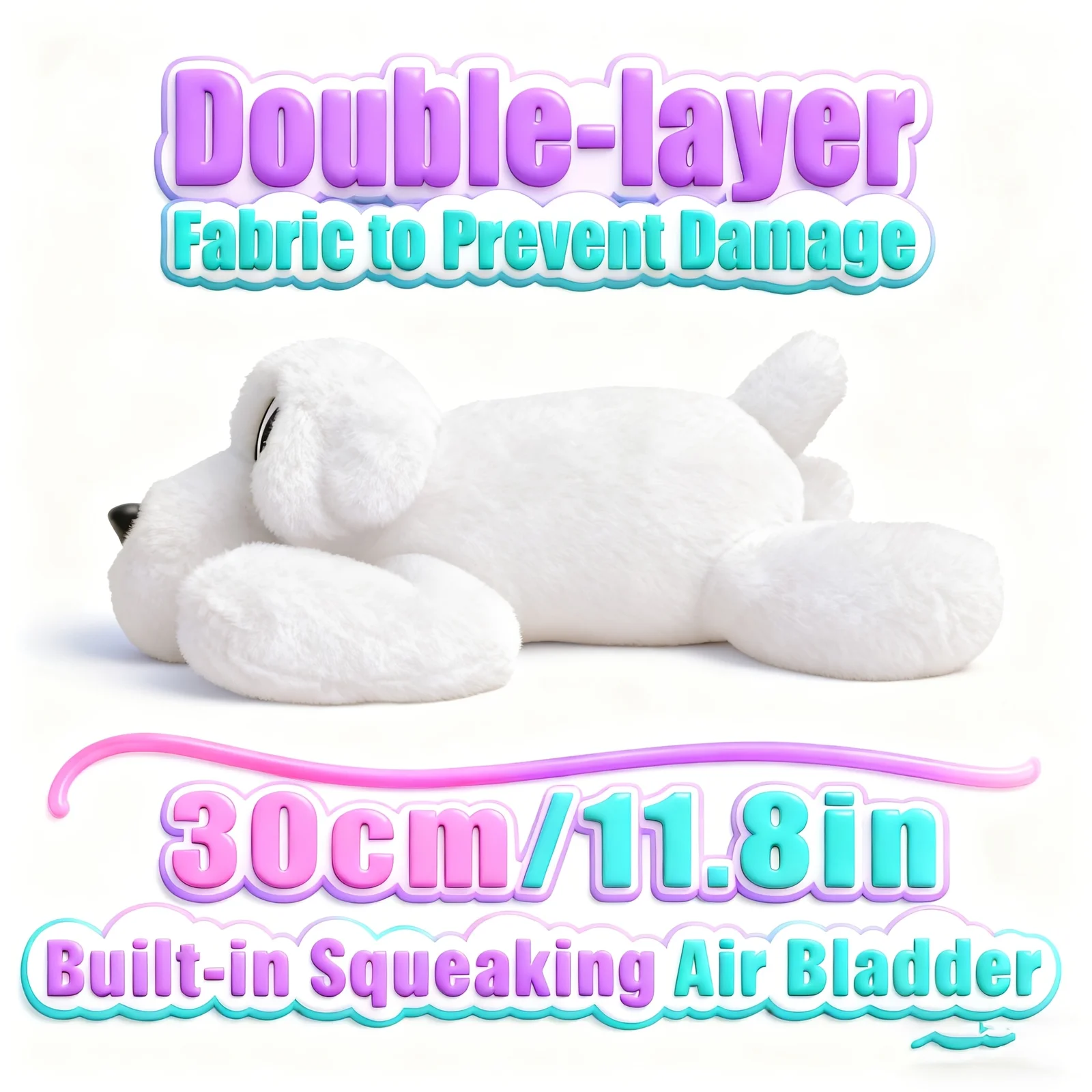 This charming plush dog toy combines functionality with adorable aesthetics, making it a favorite among pets and owners alike. The realistic puppy design creates an engaging play experience while the reinforced construction ensures it can withstand regular use. The white color and detailed features give it a lifelike appearance that dogs find appealing. The toy’s versatile size makes it appropriate for various dog breeds, while its soft texture provides comfort during play or rest time.