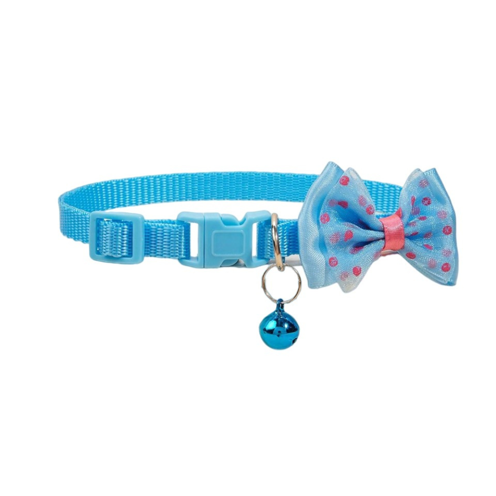 The collar combines style and practicality with its quick-release buckle system for safety and adjustable sizing for the perfect fit. The attached bell helps keep track of your pet’s location while adding a sweet chiming sound to their movements. The polka dot bow tie is securely attached and adds a dressy, feminine touch that’s perfect for special occasions while being durable enough for everyday wear.