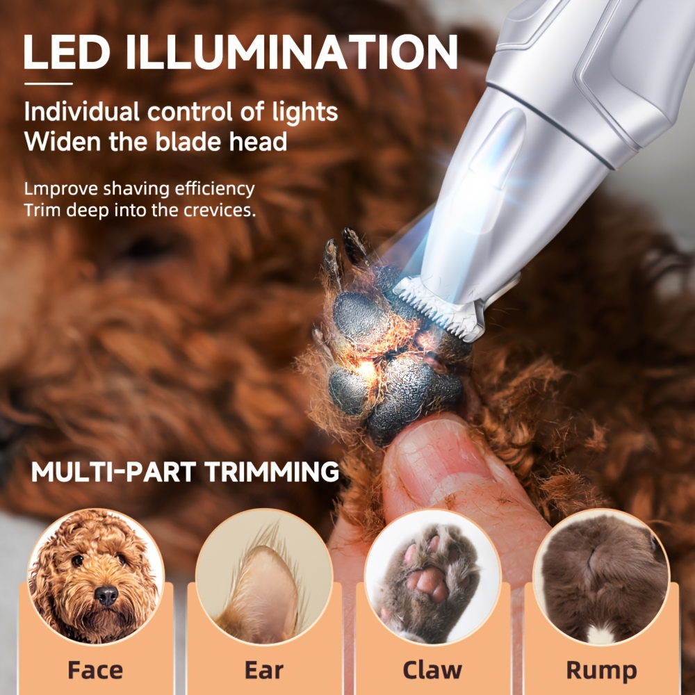 With LED Light, Wide Blade – Low Noise Rechargeable Pet Trimmer for Paws, Face, Ears, Tail & Sensitive Areas, USB-Powered Lithium Battery, Safe for Sensitive Light Beige, Dog Groomer Clippers, Dog Clippers for Grooming Professional Kit, Professional Dog Grooming Clippers, Pet Grooming Scissors, Dog Grooming Trimmer