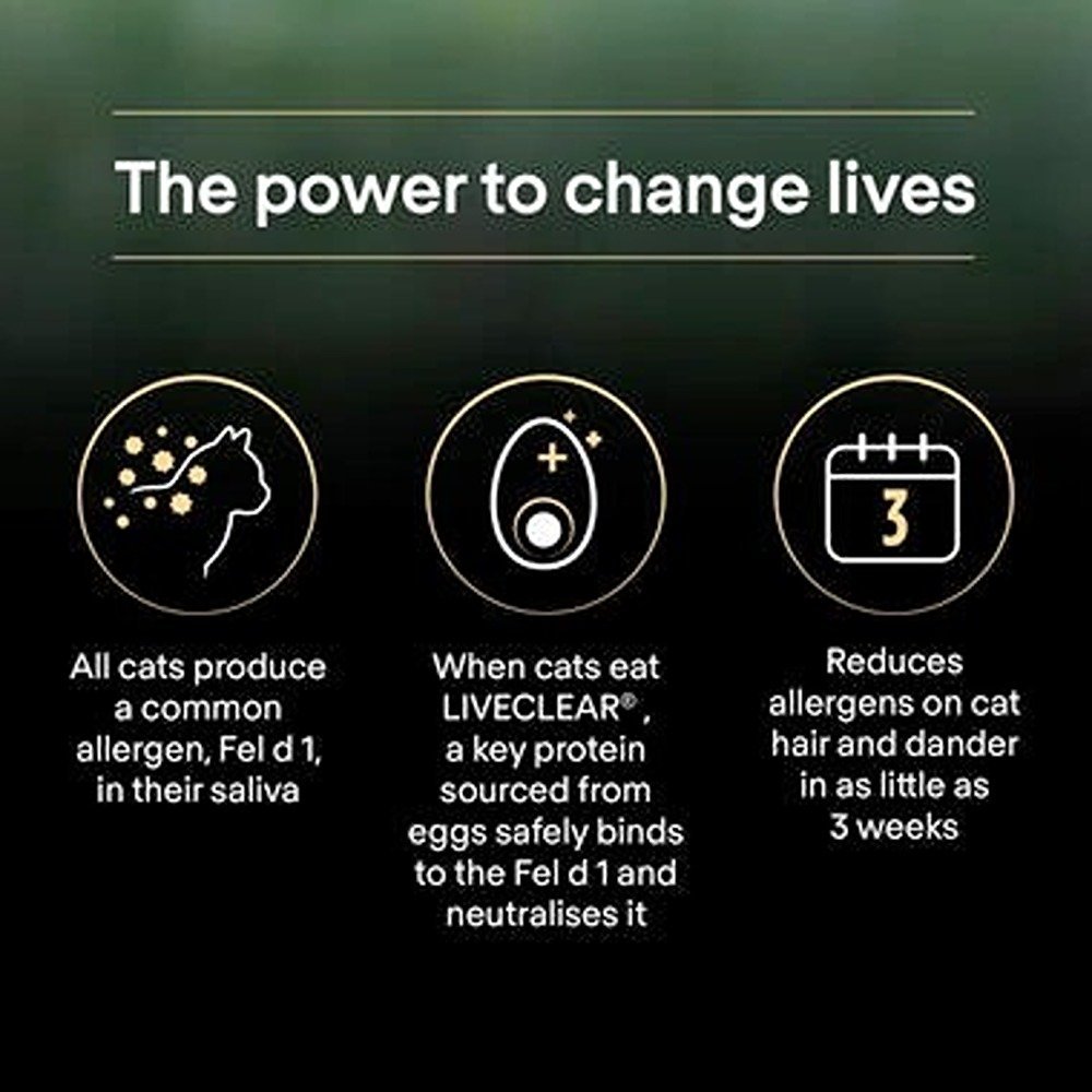 Feeding PRO PLAN LIVECLEAR is not intended to replace other allergen-reduction strategies but adds another measure that can help reduce the allergen burden in cat households and provides excellent nutrition for your cat.