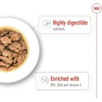 This wet food formula is part of royal canin’s size-specific nutrition line, created to meet the unique dietary needs of extra small breed dogs. The gravy-style preparation makes it highly appealing while ensuring proper hydration. The portion size is perfectly suited for smaller dogs’ appetites, and the 12-pouch box format offers convenient meal planning. For best results, serve according to your dog’s weight, age and activity level.