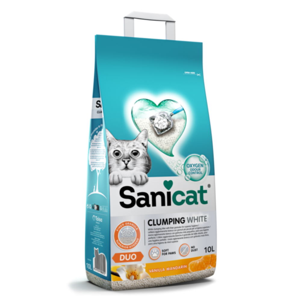 White fine granulated litter with high clumping capacity to form more solid clumps that are easy to remove. It guarantees perfect hygiene and odour control.