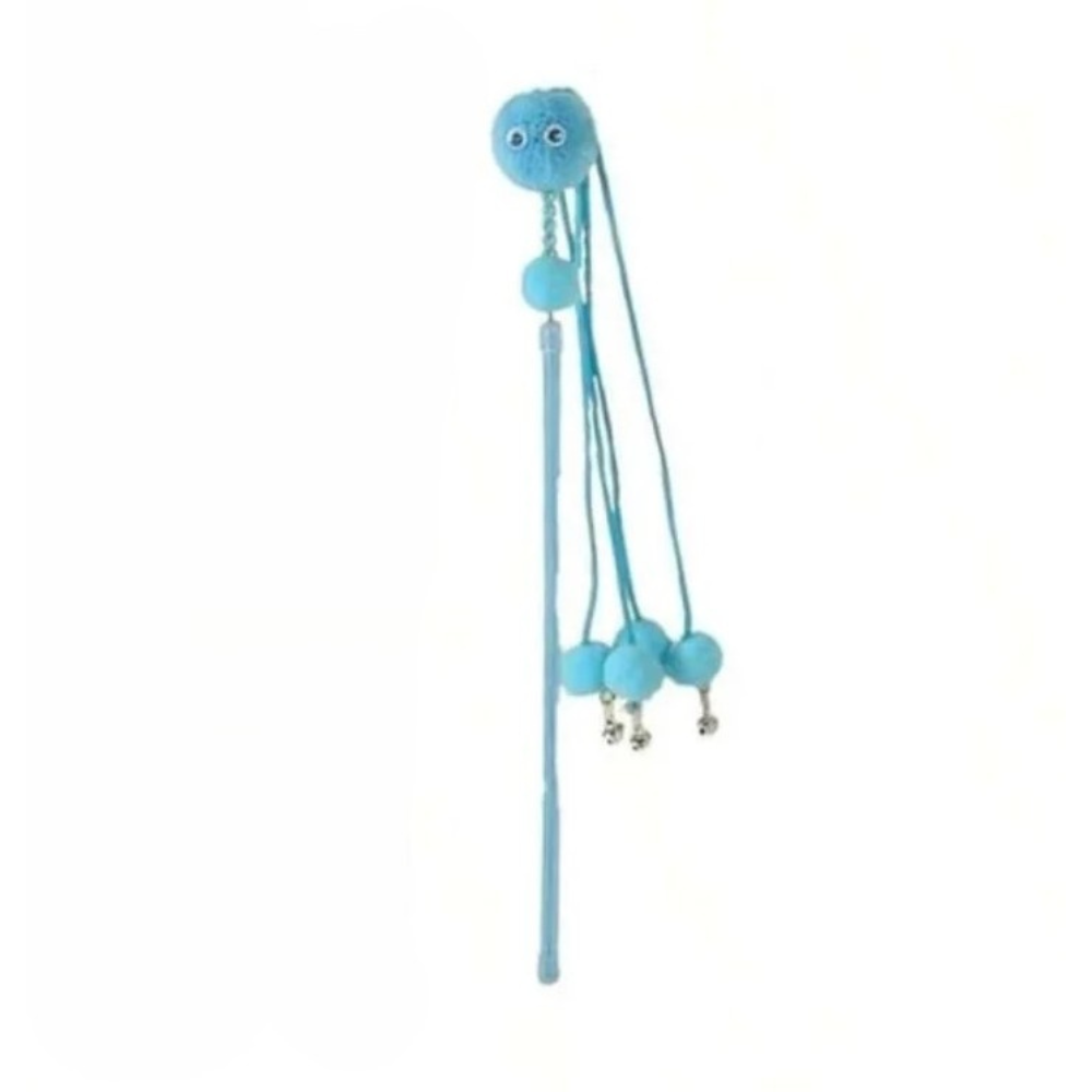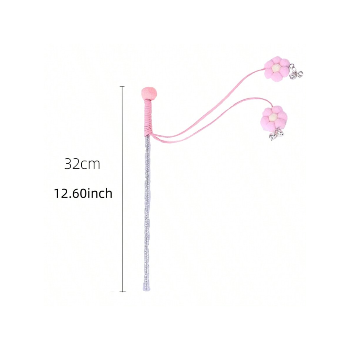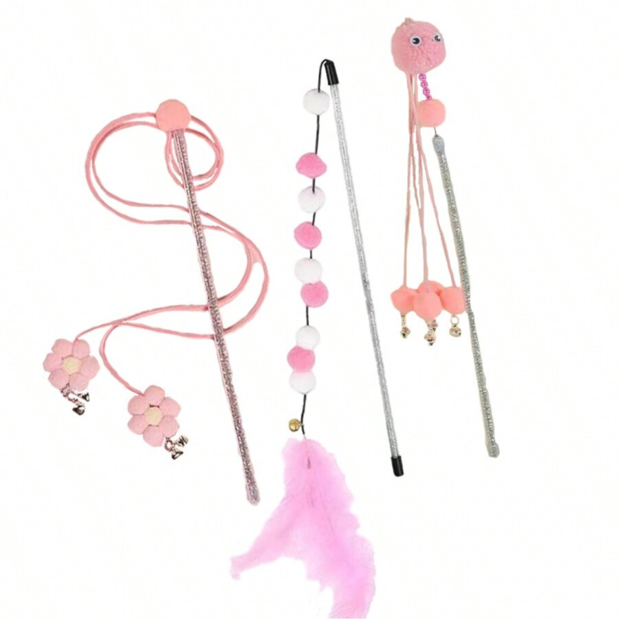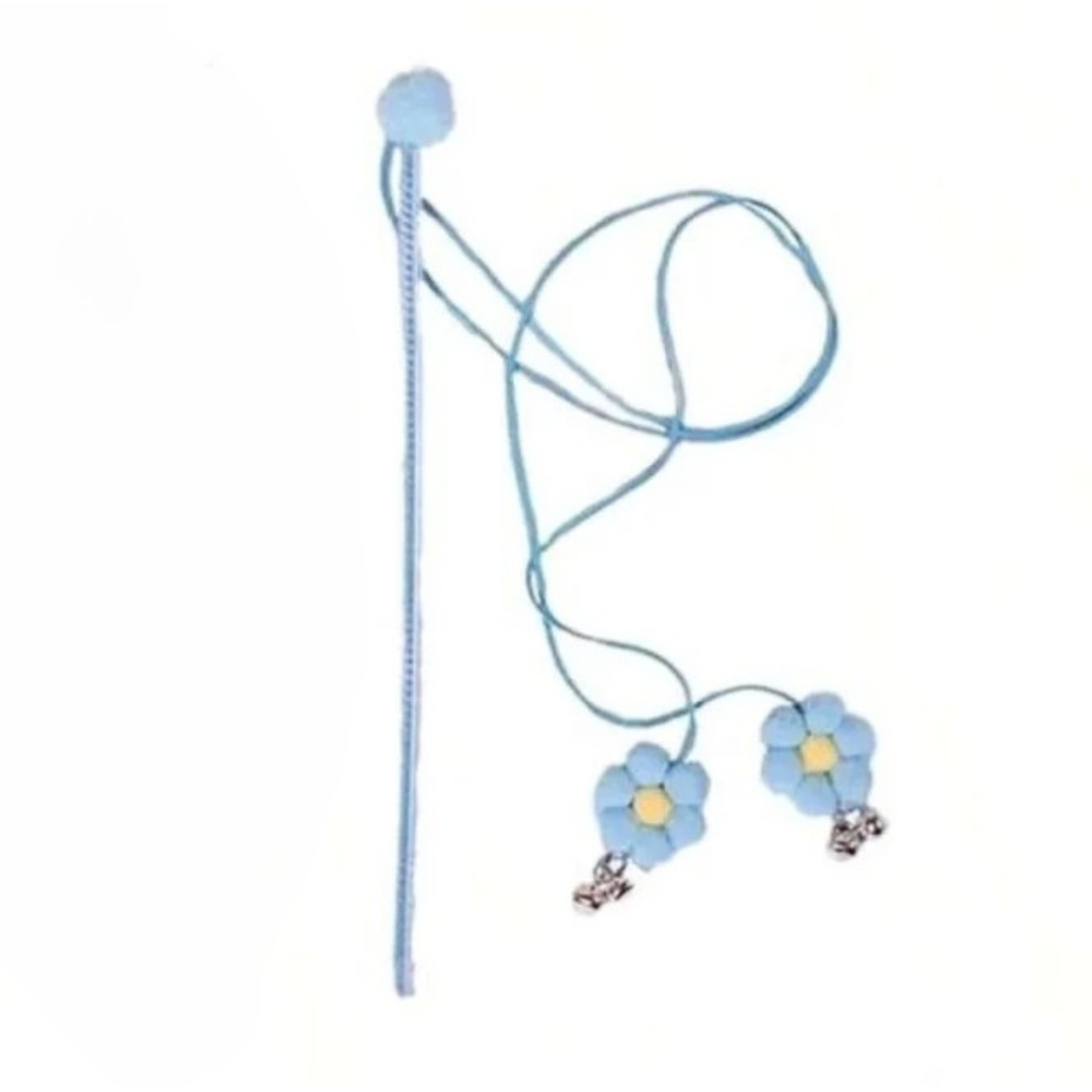 This delightful 3-piece cat teaser wand set comes in a charming sky blue theme, featuring different interactive attachments to keep your cat engaged. Each wand offers unique play elements including flower decorations, pom poms with bells, and soft feathers to entice your feline friend.