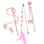 This 3 piece cat wand set is perfect for kittens and adult cats, featuring feathers, bells, and ribbons that boost fun and engagement.