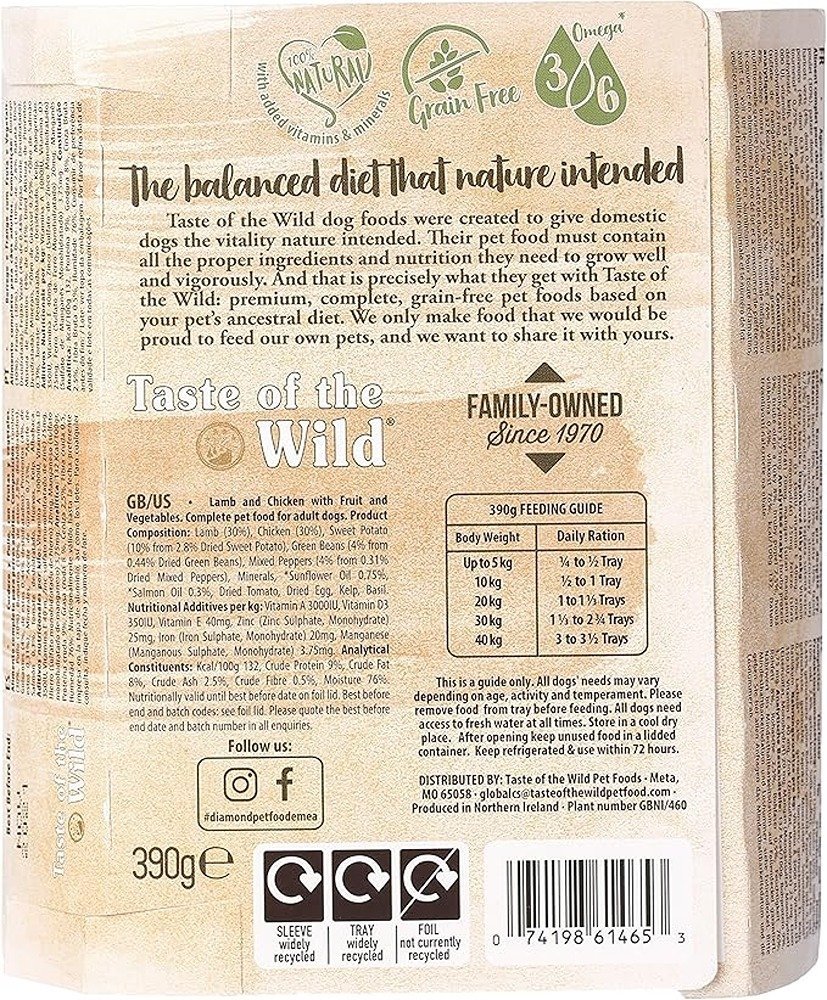 Taste Of The Wild Lamb Fruit & Veg Pate For Dogs 390g