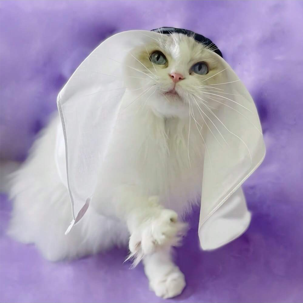 This traditional headpiece features a clean white fabric that drapes gracefully, allowing your pet to participate in cultural celebrations while staying comfortable and stylish.