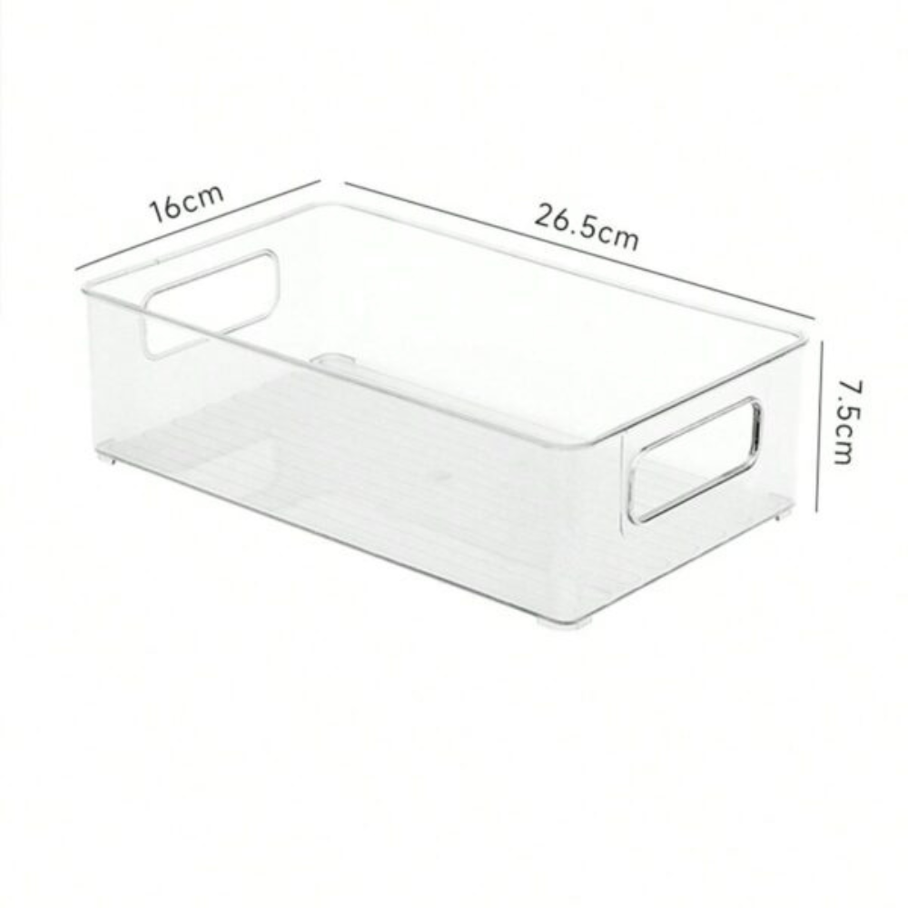 “This practical container features a clean, minimalist design with built-in handles for easy transport and accessibility.