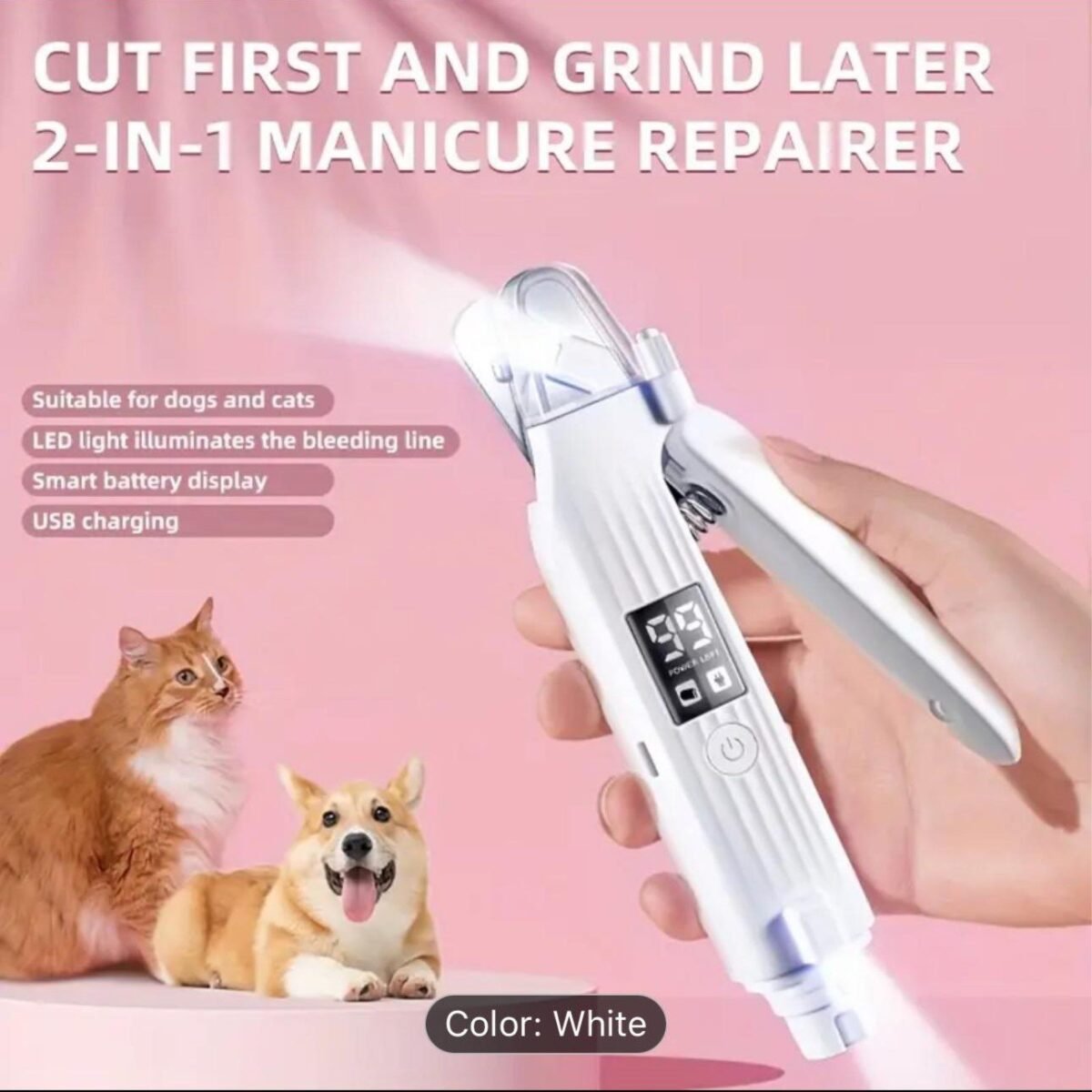 This innovative 2-in-1 pet nail care device combines cutting and grinding functions with smart features like LED lighting and USB charging.