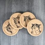 Whimsy Cat Engraved Tableware Cork Coasters – 6 pcs