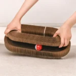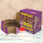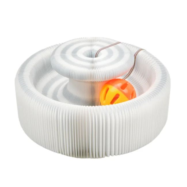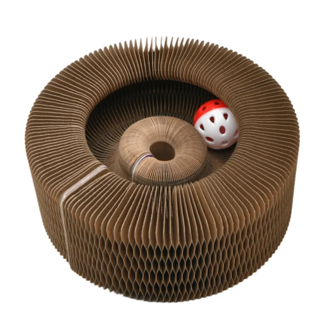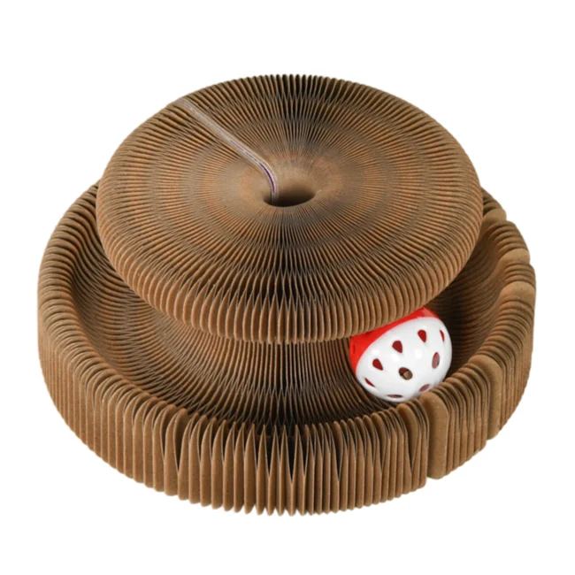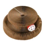 The wiggles magic ball track cat scratch is an innovative cat toy combining a multi-level corrugated cardboard scratcher with an integrated ball track system. This brown-colored interactive toy features a unique foldable accordion design that creates engaging pathways for rolling balls while providing an appealing scratching surface.