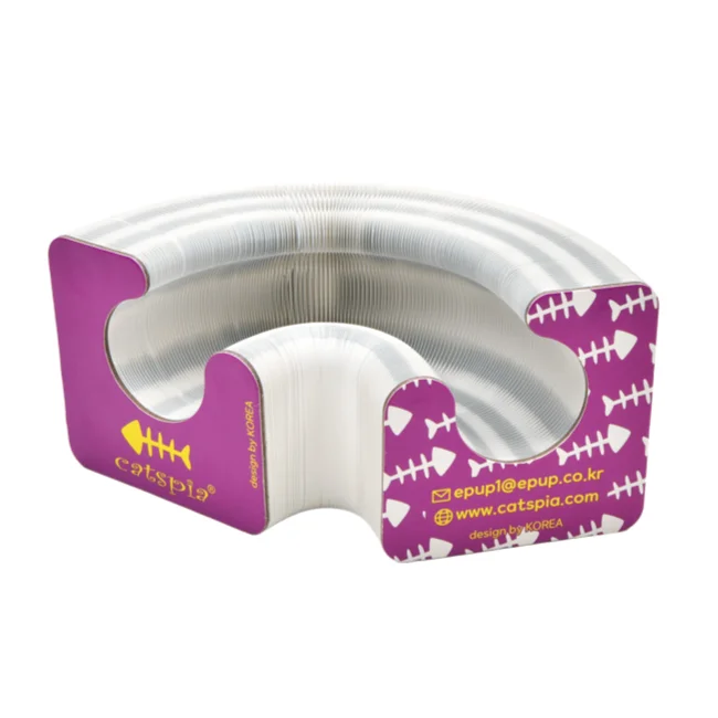 The scratcher expands to create multiple tiers with interconnected tracks where cats can chase and bat at the included bells. When folded, it maintains a compact footprint while still offering an enticing scratching surface. The sturdy corrugated cardboard construction is enhanced with blue and pink accent colors, making it both functional and aesthetically pleasing. The design encourages natural hunting and scratching behaviors while providing hours of entertainment through independent play.