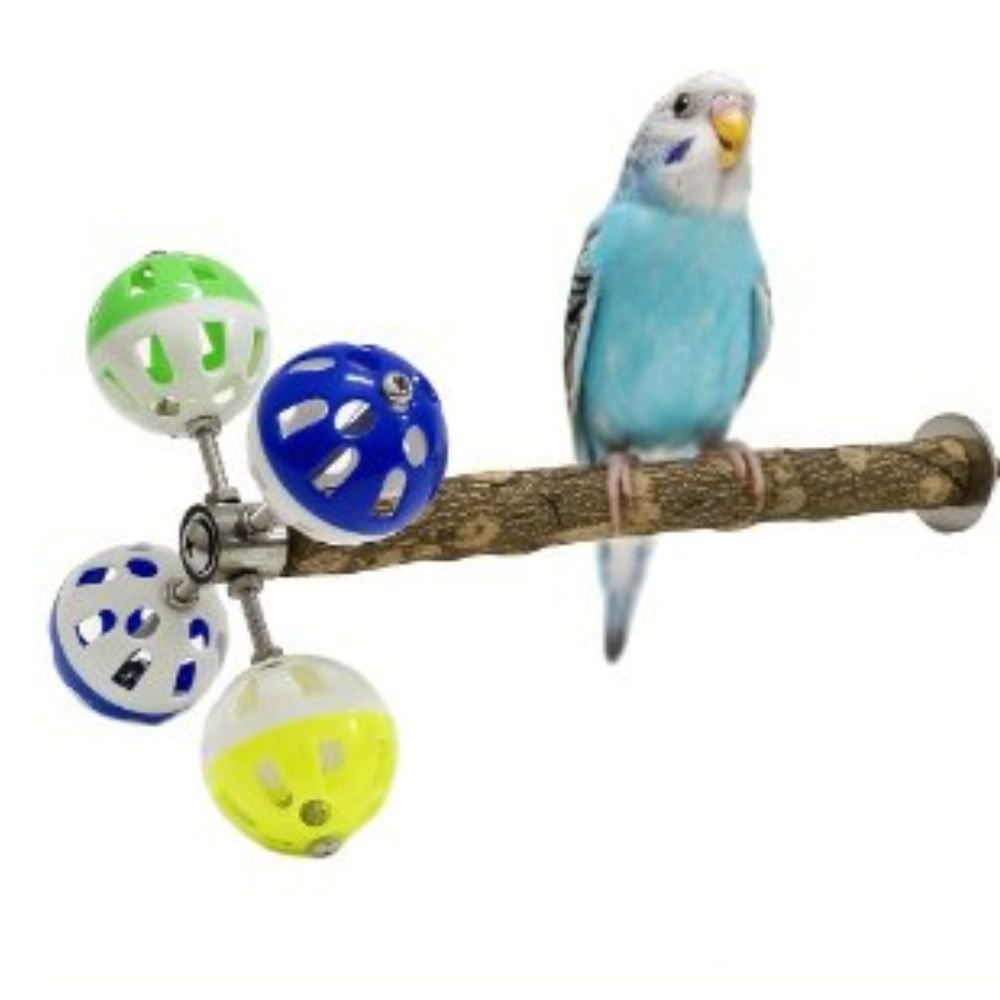 Wooden Bird Rotating Perch Toy With Bell Balls With Clamp Holder