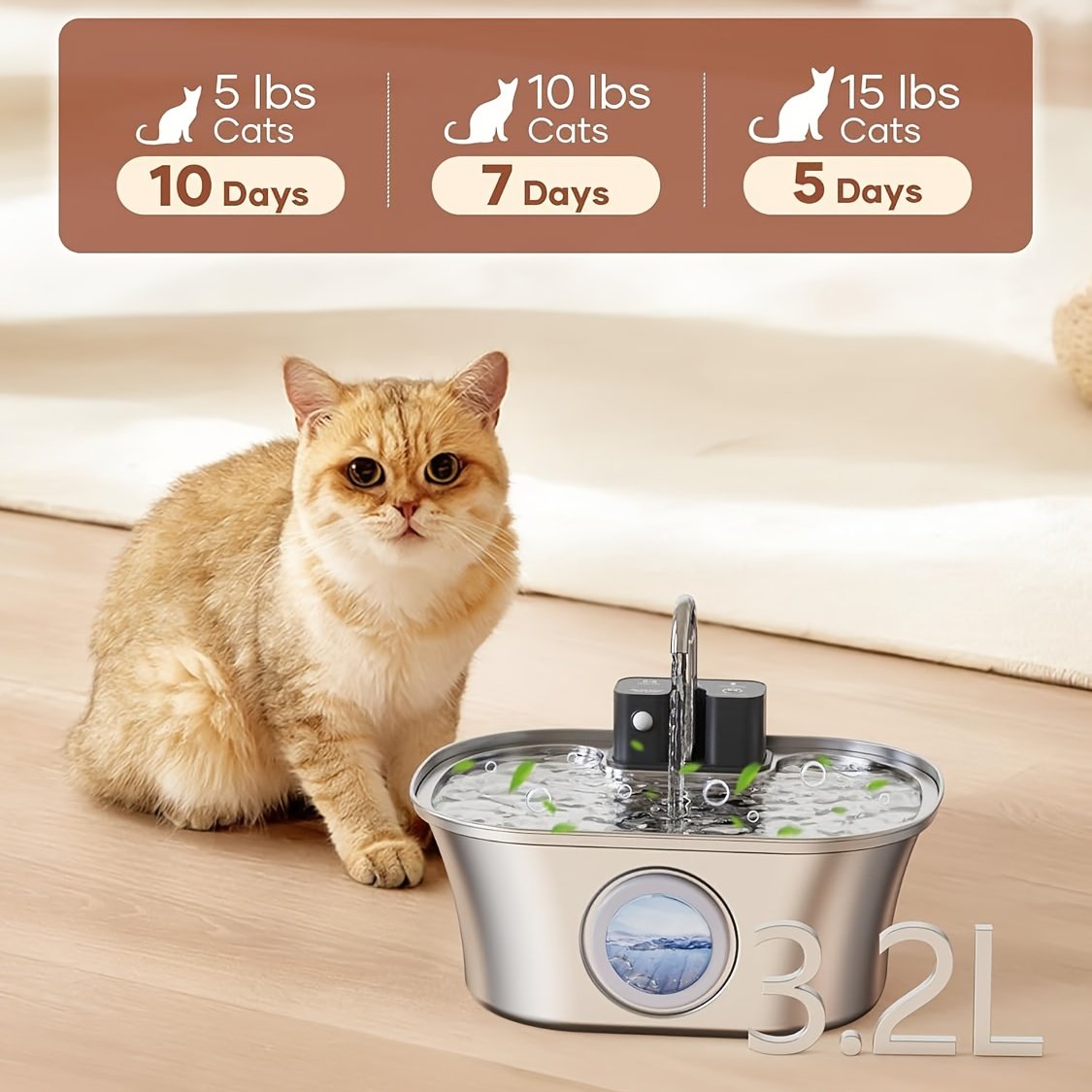 The Zinna Smart Pet Water Dispenser is a versatile 3.2L fountain featuring motion sensor technology and dual power options. This modern dispenser combines intelligent features with a premium stainless steel-like finish to provide pets with fresh, flowing water while maintaining a sleek appearance.