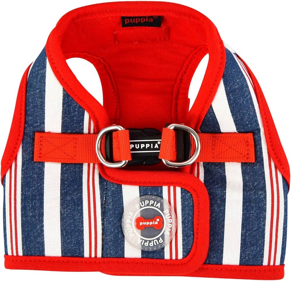 The harness features a classic American nautical aesthetic with vertical stripes and contrasting navy trim.